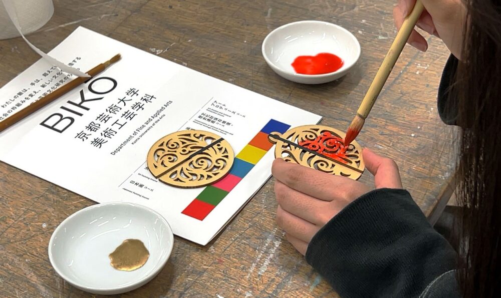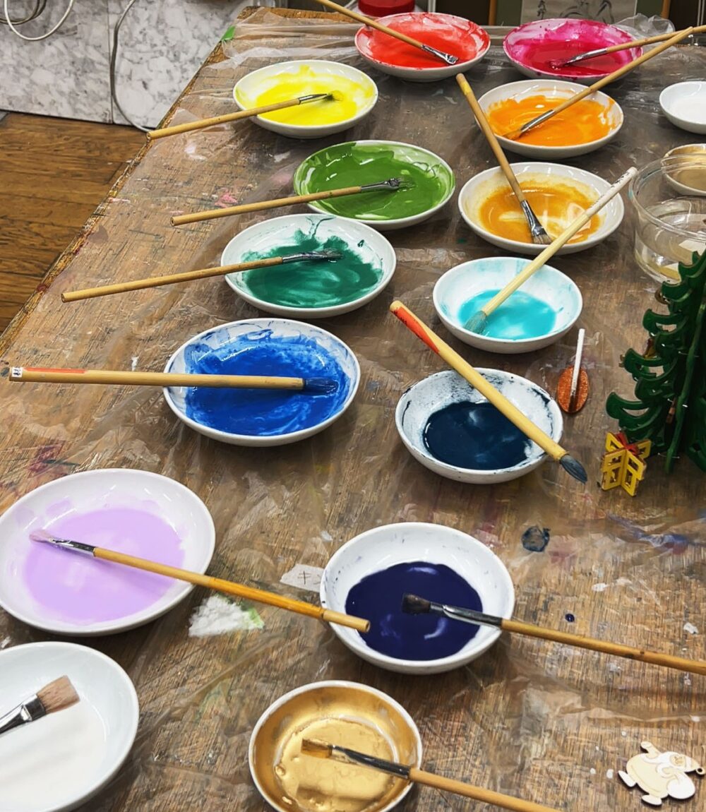 「岩絵具や金銀箔を使ってクリスマスオーナメントを作ろう!」と題し、日本画ならではの美しい素材に触れていただきました。