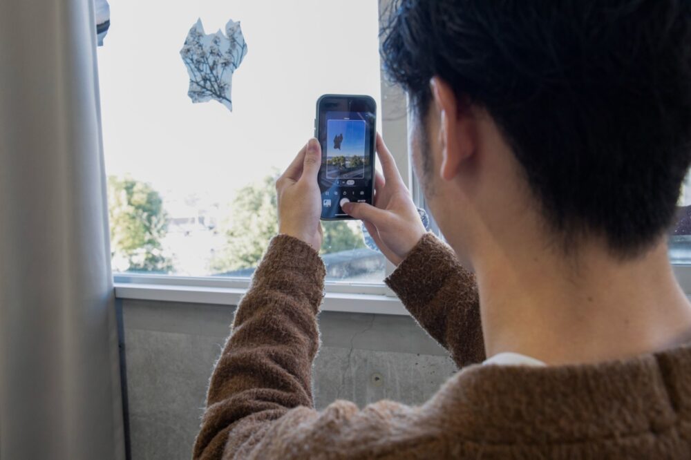 配置された写真を再び撮影し、現実の空間と写真として切り取られたイメージを比較することで、「見ること」「記録すること」「記憶すること」の差異やズレに意識を向けます。