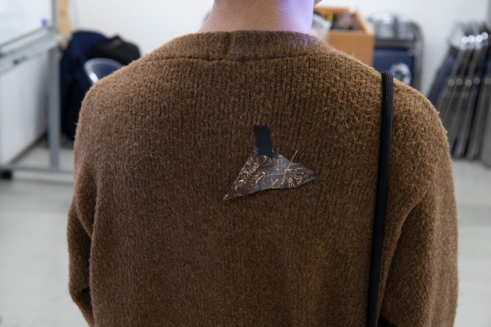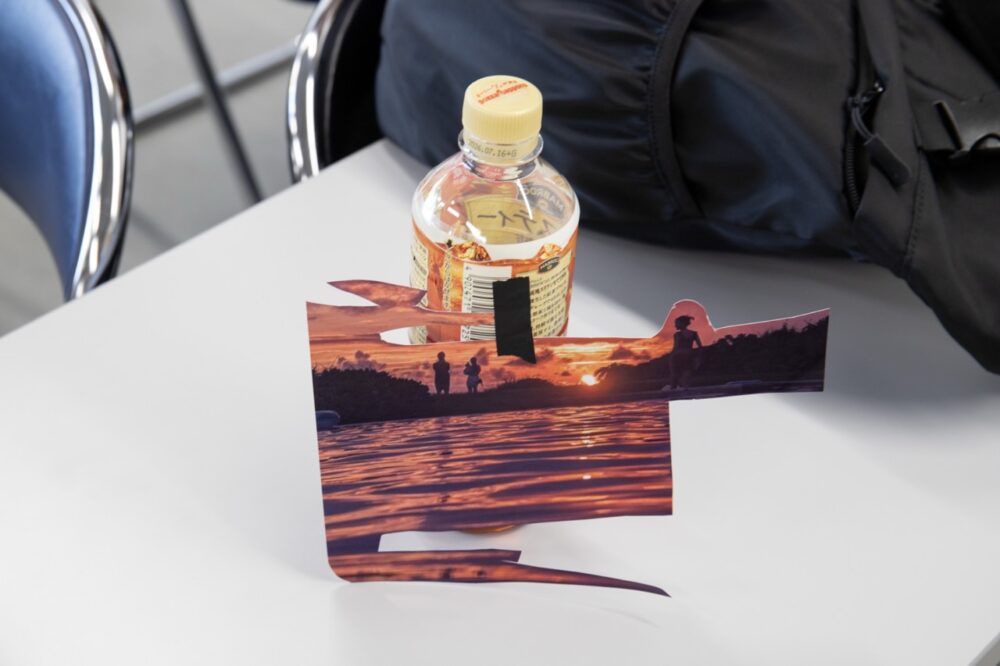 切り取ったイメージの配置場所にはペットボトルや椅子、さらには参加者の背中までも使われ、空間のあちこちにイメージが点在していく光景は発見に満ちていました。