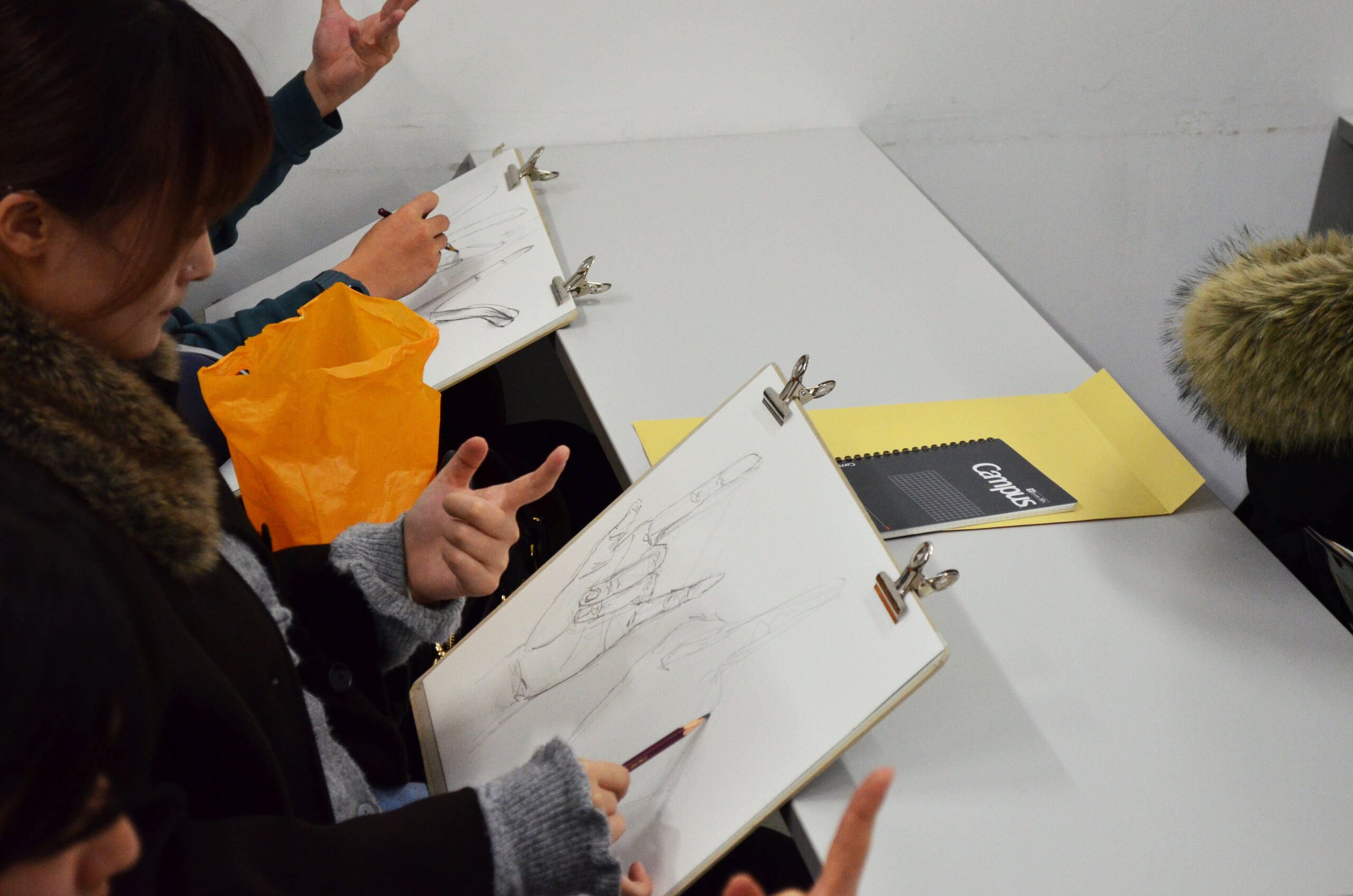 普段目にする手を観察しながら紙の上で鉛筆を走らせていきます👍