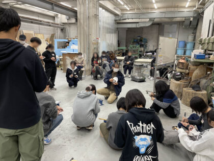 皆さんとても寒かったと思うのですが、ハンマーで繰り返し叩きだす運動で身体もアルミ板もホカホカだったと思います!お疲れ様でした!!