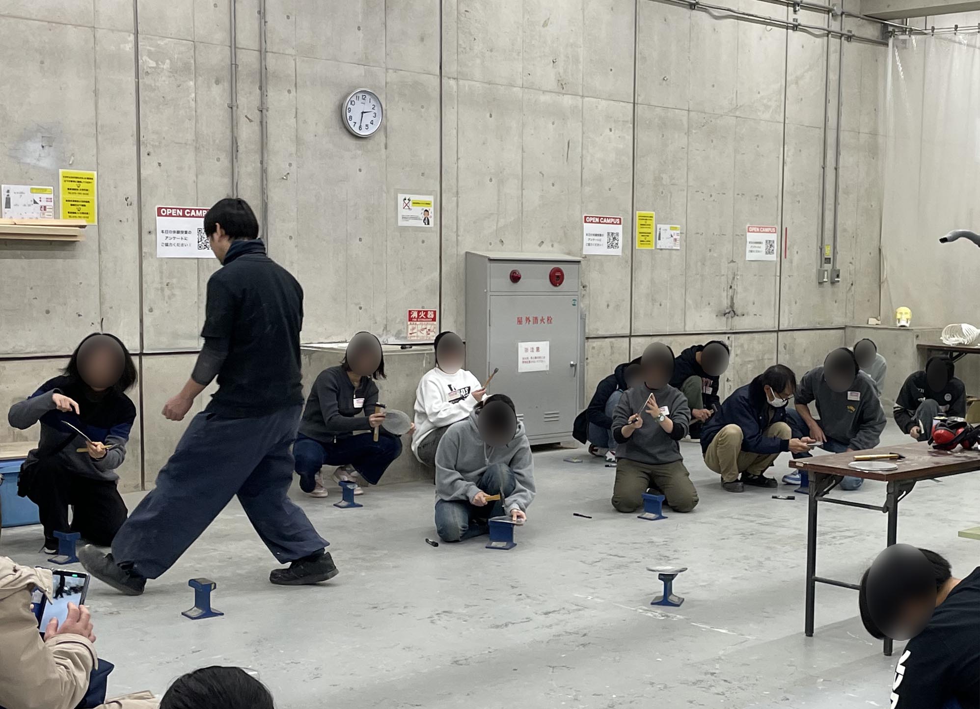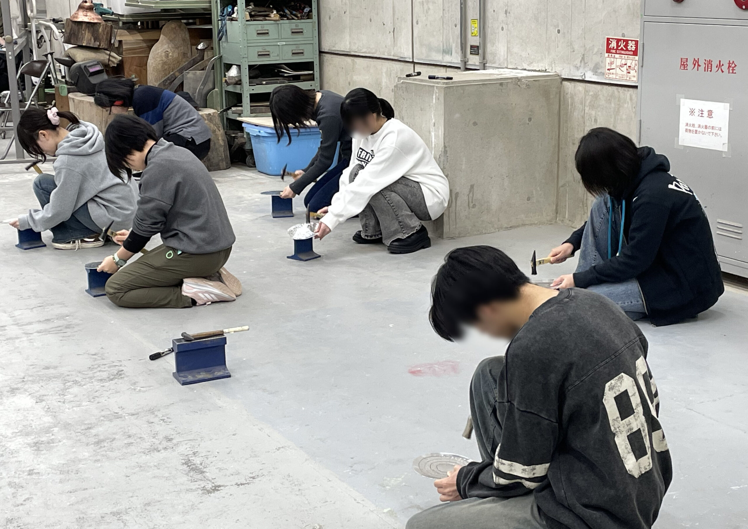 今回のオープンキャンパスでは、硬い金属を叩いて形を変える伝統技法 「鎚起(ついき)」を体験いただきました!
