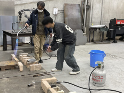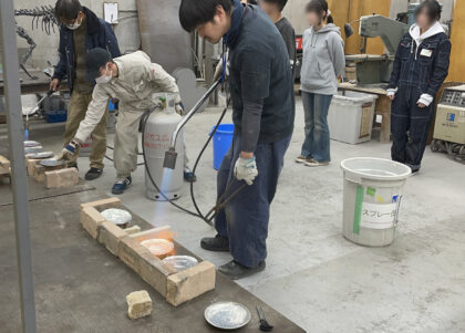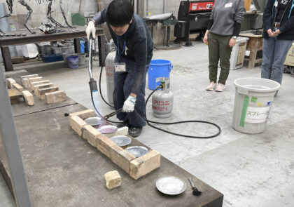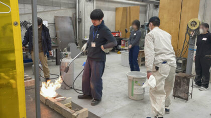 この規模の炎は日常生活では見られないので、ものづくりの現場ならではの迫力のある光景ですね。