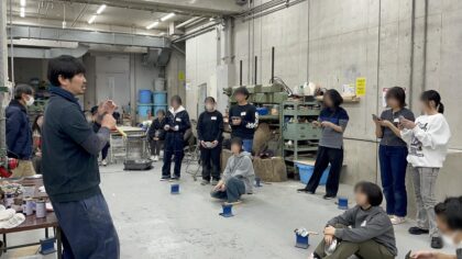 日本の伝統技法 「鎚起(ついき)」 を体験してもらいます。 アルミ板を金槌でひたすら叩き、1枚の平らな板から世界にひとつだけのお皿を作り出します。 自分の手で金属の表情が変わっていく感動を、ぜひ味わってみてください。