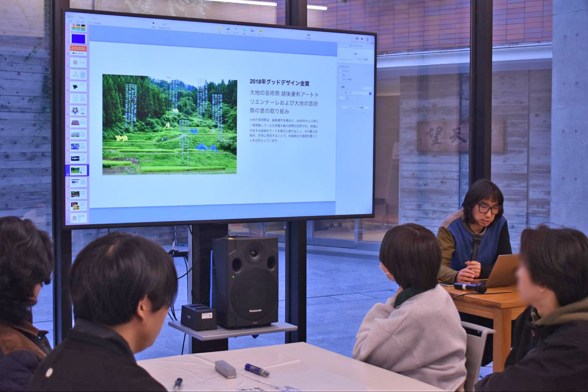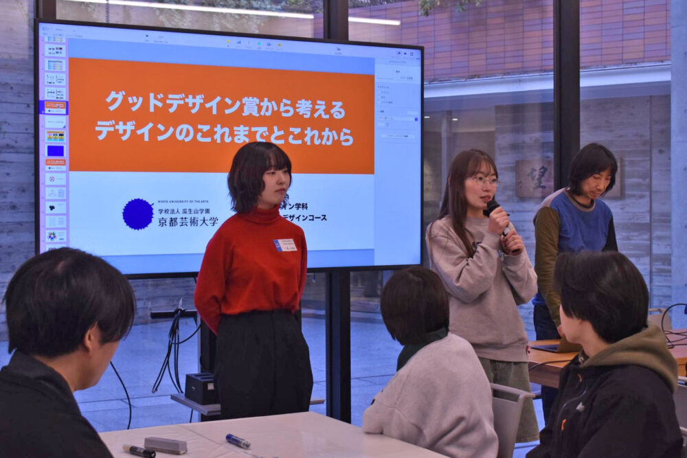 今回の授業を担当されたのは中山先生! 先生から「京都芸術大学の中でグッドデザイン賞を選ぶとしたら、どんなものがふさわしいか?」というお題が出され、高校生のみなさんにはグループに分かれて考えてもらいました。