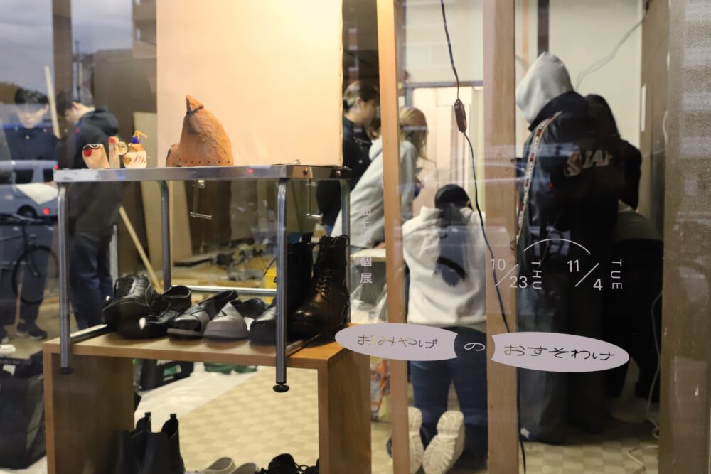 「おみやげのおすそわけ」という展示タイトルも素敵です。商店街の雰囲気に馴染むと言いますか、地域にあたたかく寄り添おうとしている印象を受けます。