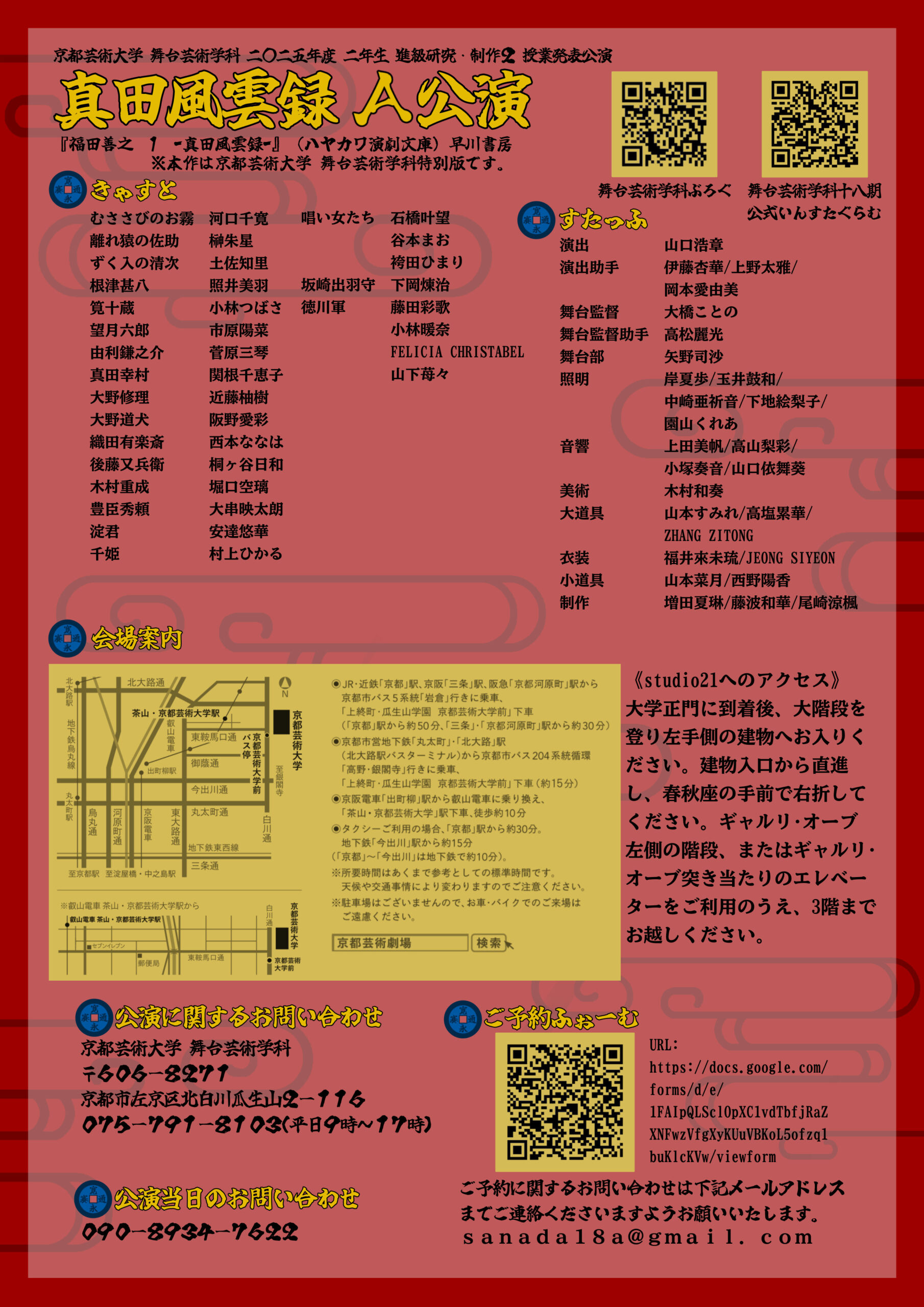 【公演に関するお問い合わせ】〒606-8271京都市左京区北白川瓜生山2-116京都芸術大学 舞台芸術学科TEL:075-791-8103(平日9:00~17:00)
