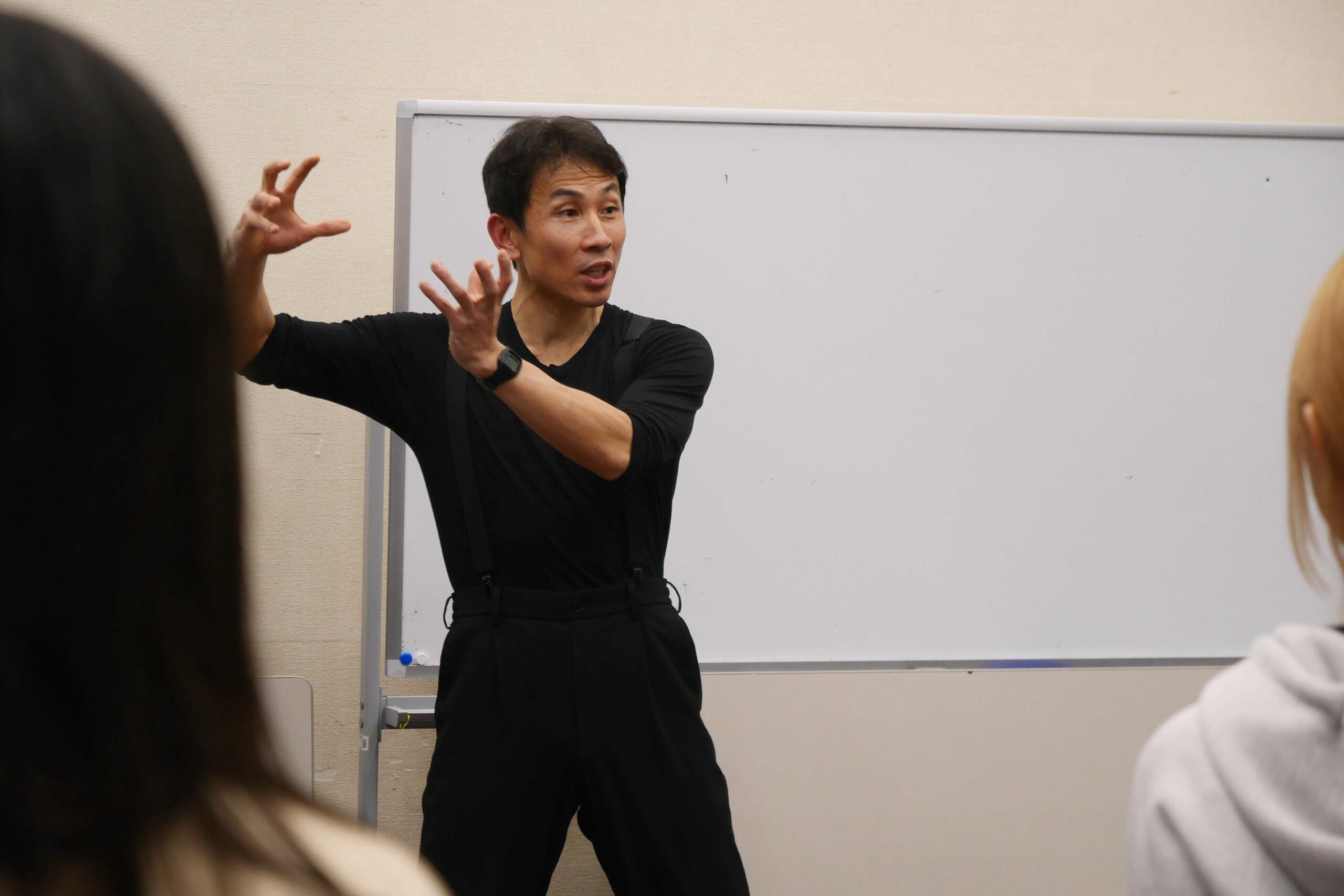 映画「鬼滅の刃」やアニメ版「忍たま乱太郎」など多くの作品に出演されている山崎たくみ氏をお迎えして、声優の表現とはどんな事であるかを座学と実践ワークによってご教授いただいた。