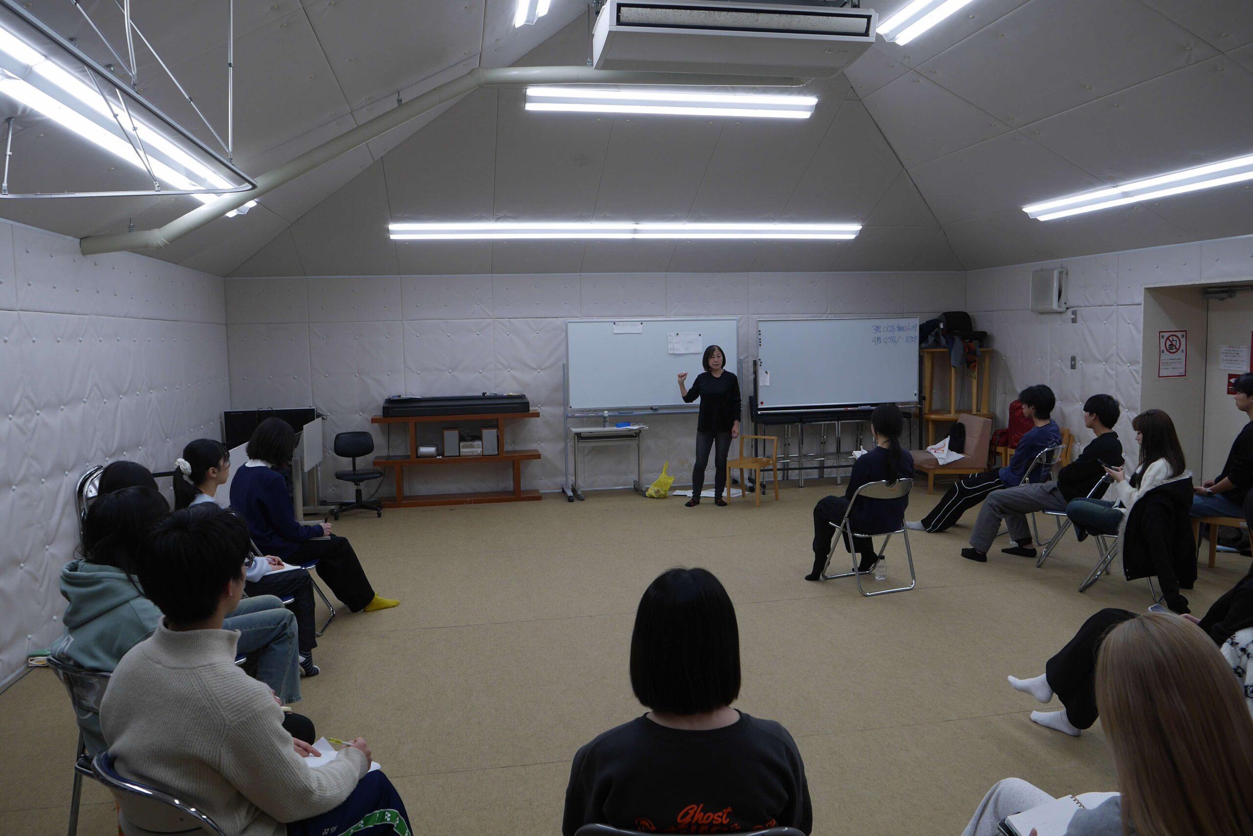 今回の山本先生の授業はまさしく演技表現に直結する座学から始まって、表現の追求を体験するワークへと移っていった。
