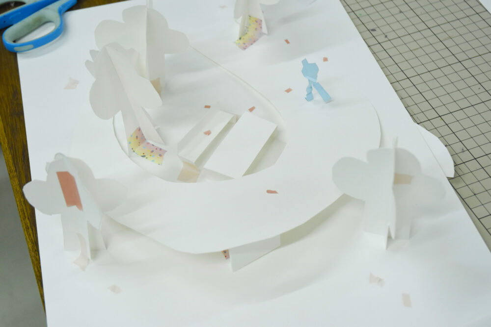 白の模型のなかに、人を入れたり、色を入れたりすれば、ぐんと完成度があがりますね!