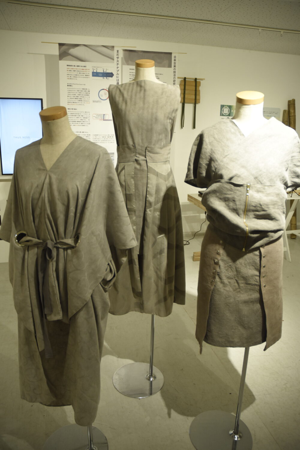 染料の研究にも力を入れ、シンプルな直線縫いで作られた衣服は、数パターンの着こなしも提案し、今後の発展も期待できるものとなりました。