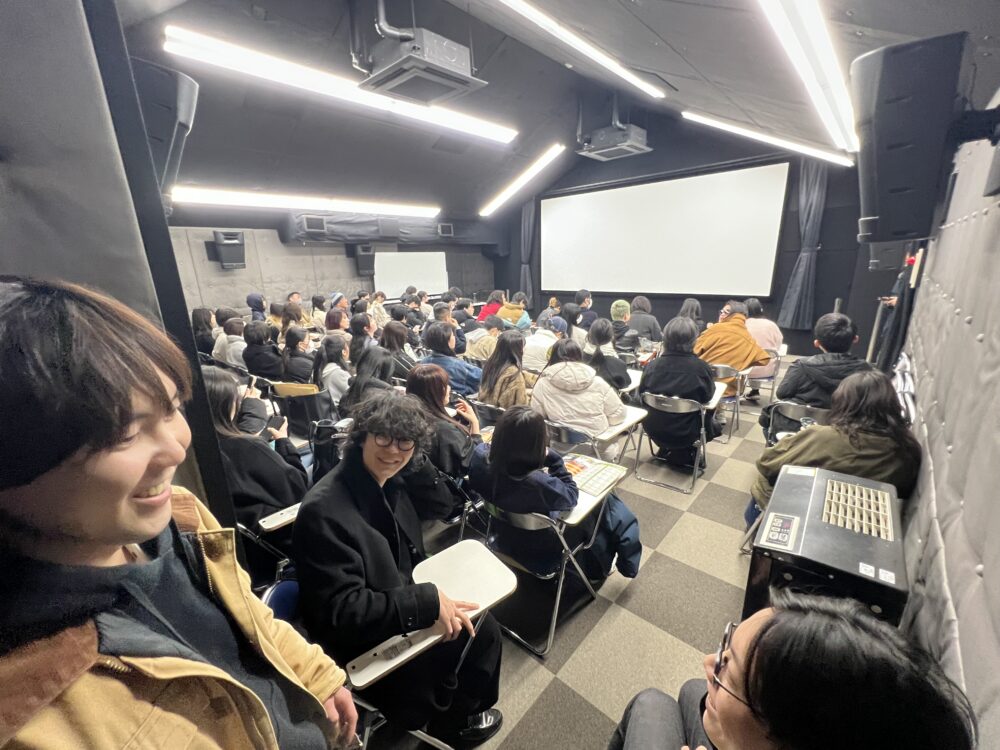 映画学科は高原校舎の2スクリーンでの連日の映画上映に加え、脚本や論文、インスタレーションの展示、各作品の物販、飲食販売を2月15日(日)まで連日行っています。スケジュール詳細は学生が運営する映画学科公式サイト「D STUDIO」の卒展特設ページをご確認ください。
