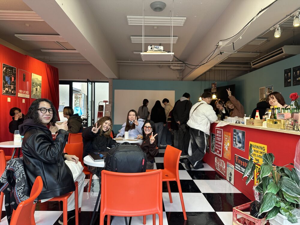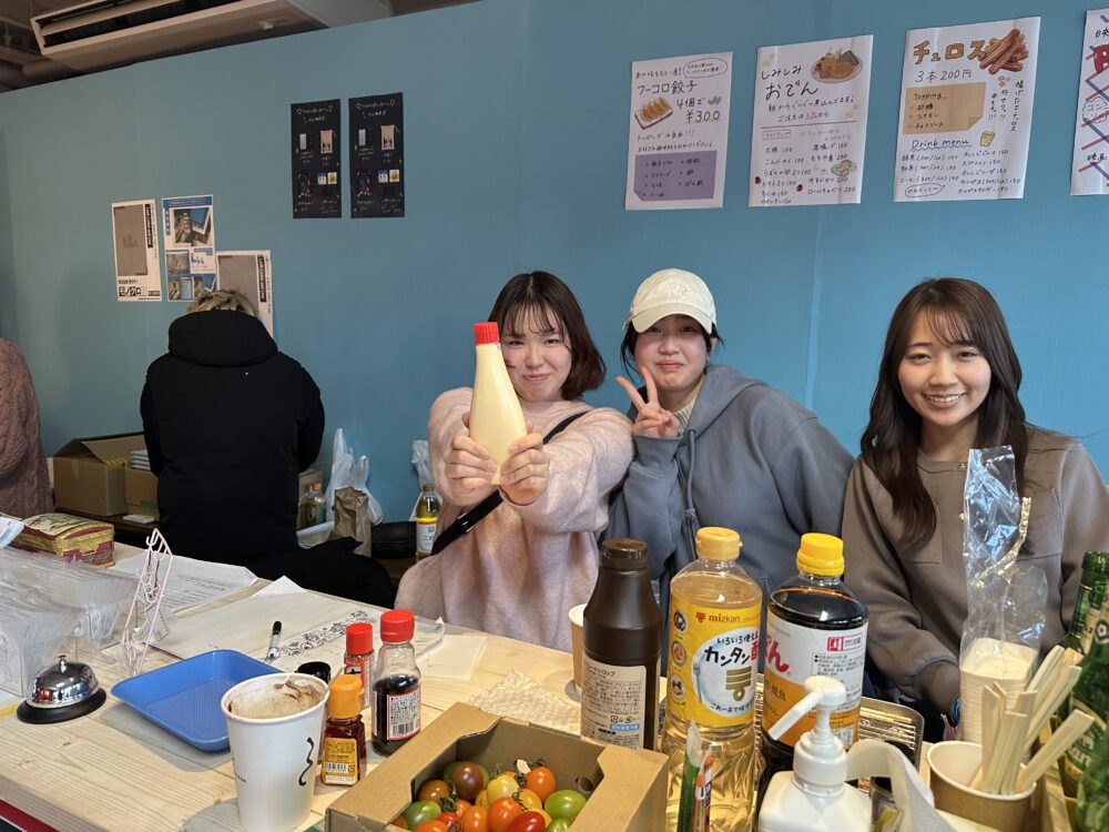 鞍馬口通り側の入口にあるのは映画館のロビー/コンセッション的な明るい雰囲気の特設カフェが! 普段はなんの変哲もない教室として使用しているTN11を大改装。ポップコーンやチュロス、飲み物(リーズナブル!)を始め、映画学科名物(?)のフーコロ餃子やおでんなど、盛り沢山の飲食メニューでご来場をお待ちしています。