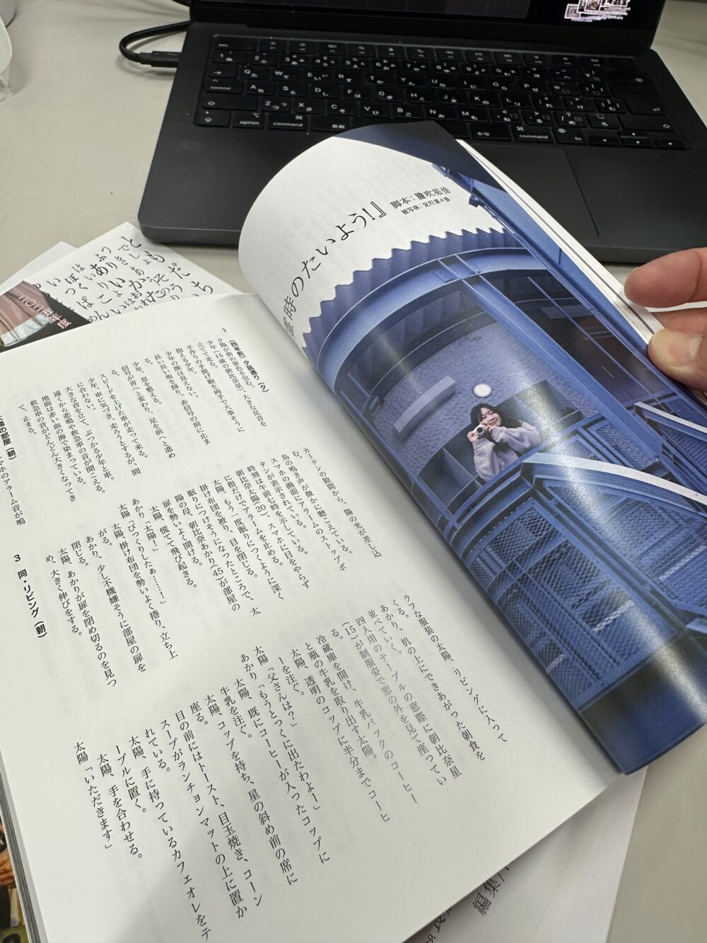 物販の横には卒制で執筆された脚本や論文が製本されて展示されていますので、カフェで暖まりながらゆっくり読んで頂けます。