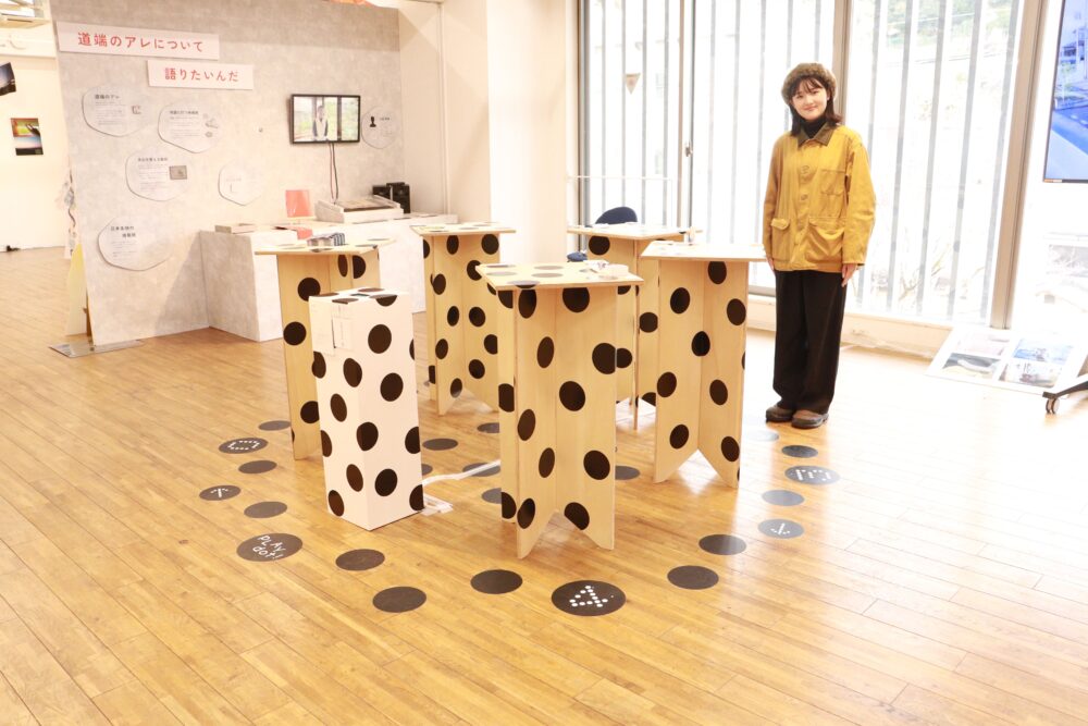 この作品は、自身の幼少期の記憶をきっかけに、シール貼りや色塗りなどの作業体験を通して、手を動かすことで生まれる感覚や、つくることの楽しさを再び感じてもらえたらと思い制作しました。目の前の作業に没頭することで、日常的に触れている多くの情報から離れ、自分自身を解放できる時間をつくりたいと考えました。デジタル化が進み、手を動かして何かをつくる機会が少なくなっていると感じる中で、作業に集中する体験そのものを大切にした展示空間を目指しています。この度は、このような素晴らしい賞をいただき、とても嬉しく思います。卒業制作展では、たくさんの方が体験してくださり、そこから見えた新たな発見や改善点を、卒業制作をひとつの出発点として、今後も考え続けられるデザイナーになりたいです。ありがとうございます。