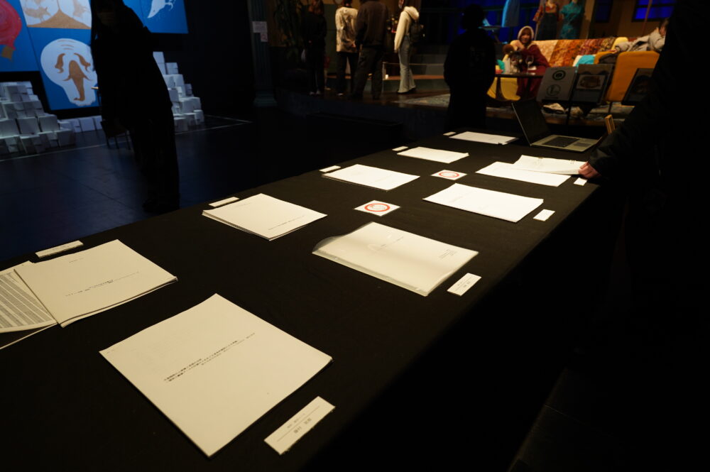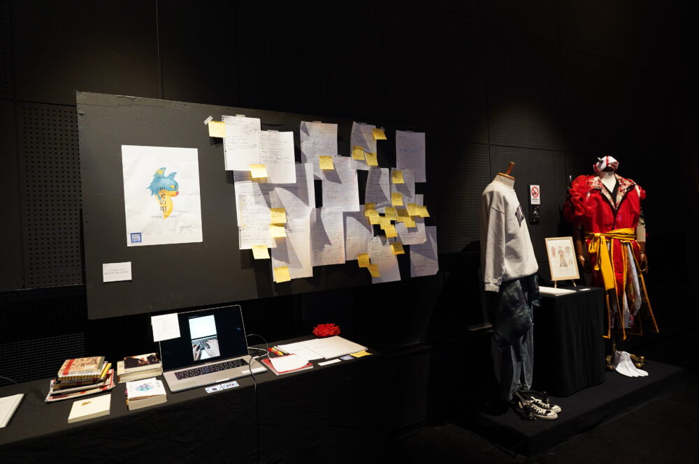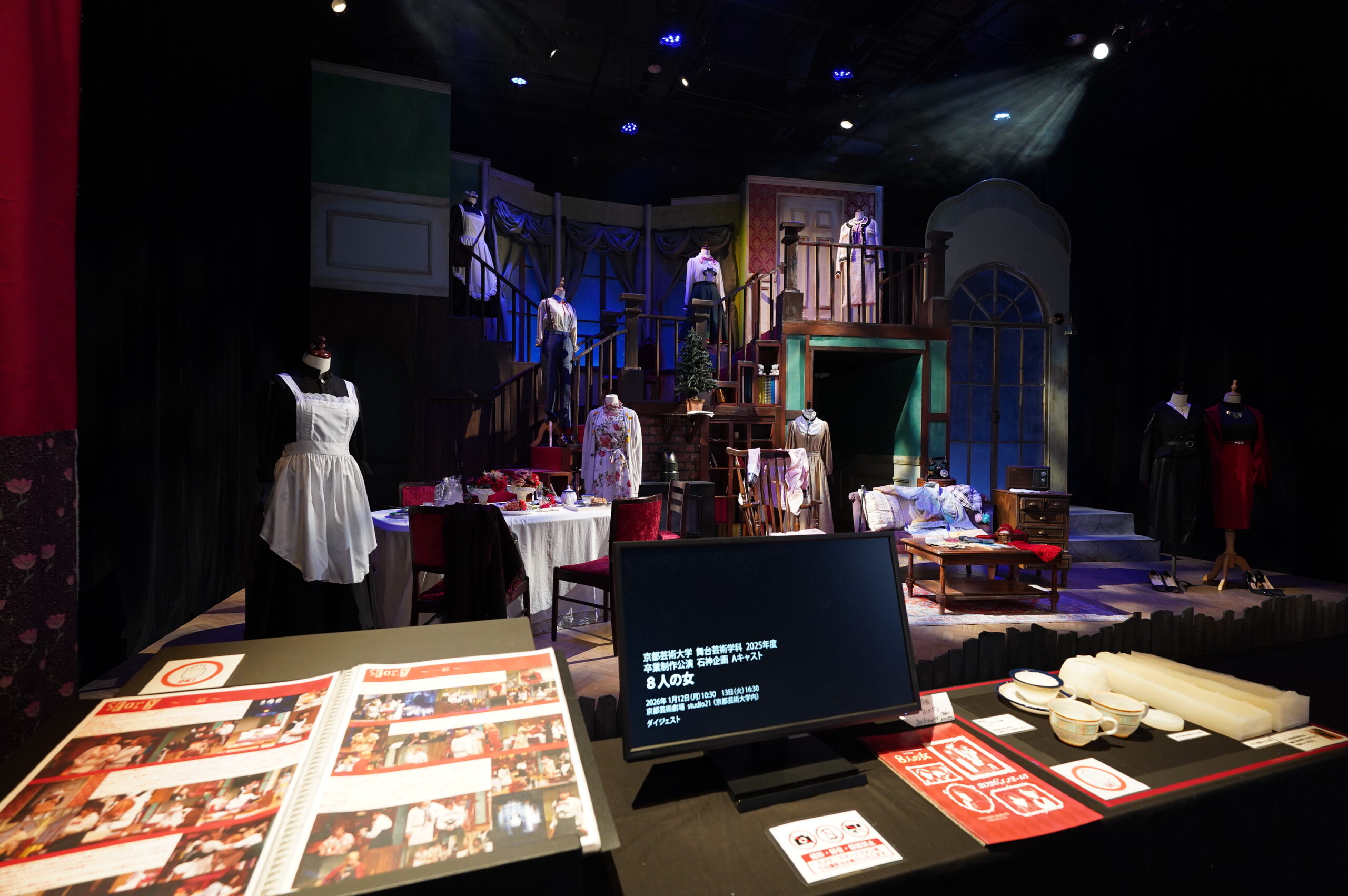 卒業制作公演の舞台セットや小道具、衣装、個人研究の論文などを展示しています。