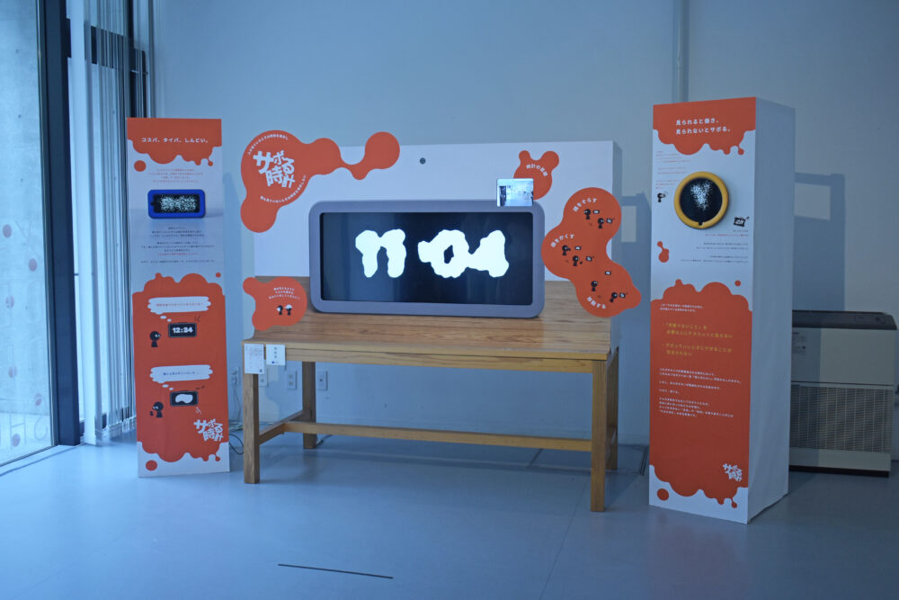 人が見ているときは時刻を表示し、誰も見ていないときは時刻を表示しない時計、『サボる時計』。効率や正確さの象徴である時計を、あえて“怠ける存在”として再定義することで、現代人が抱える緊張やプレッシャーを緩和することを試みている。