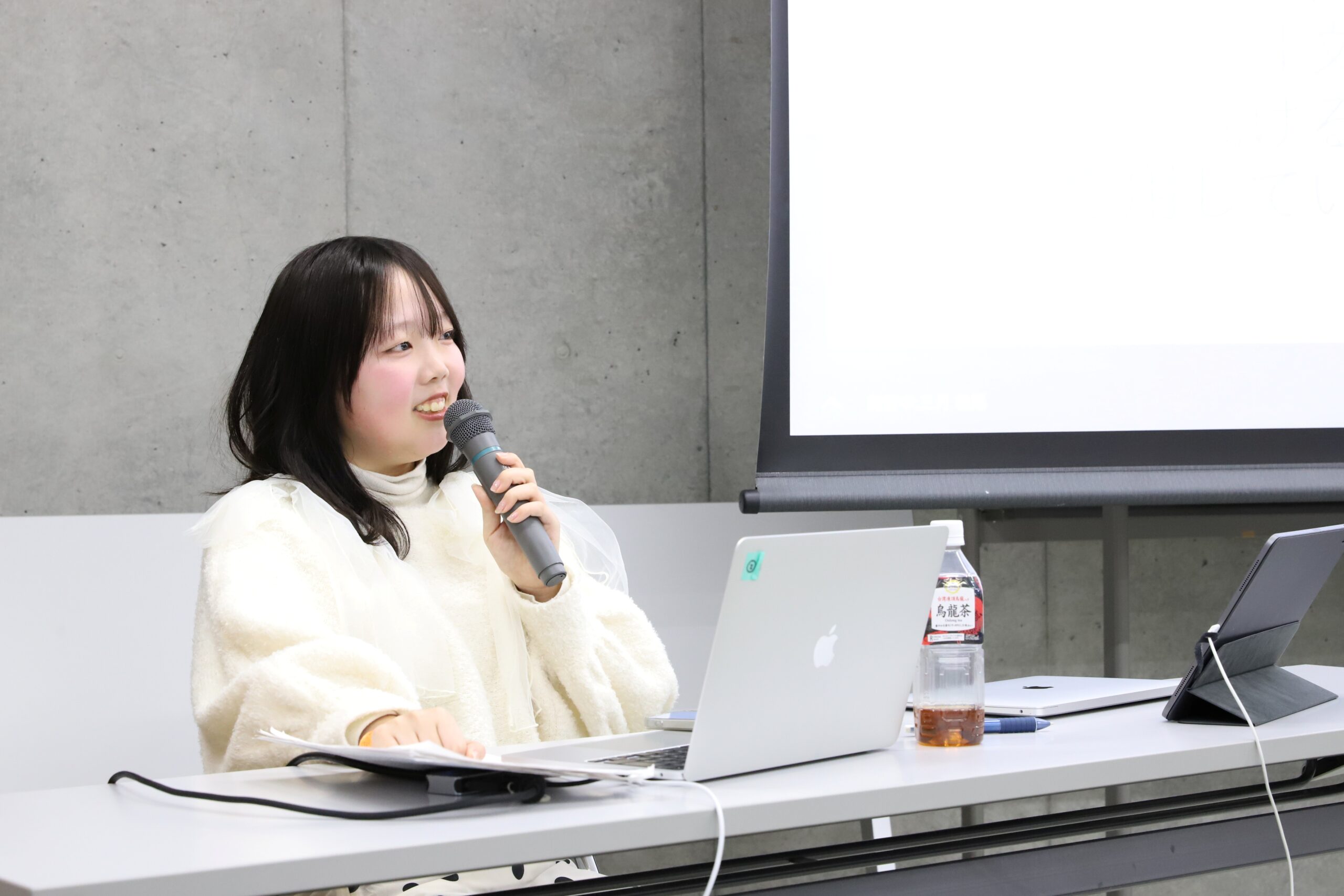 発表会にはアートプロデュース学科全学年の学科生が参加し、4年生の発表に耳を傾けます。さらにこの日は在学生だけではなく、来場者の方、卒業生、非常勤の先生方も集まってくださるので、発表にも気合が入ります。