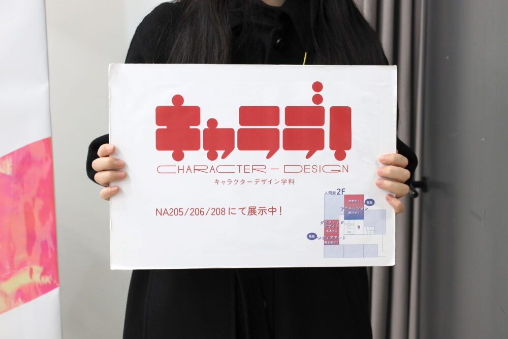 キャラクターデザインコースは今年、「相照館」と「人間館」の2校舎で展示を行いました。