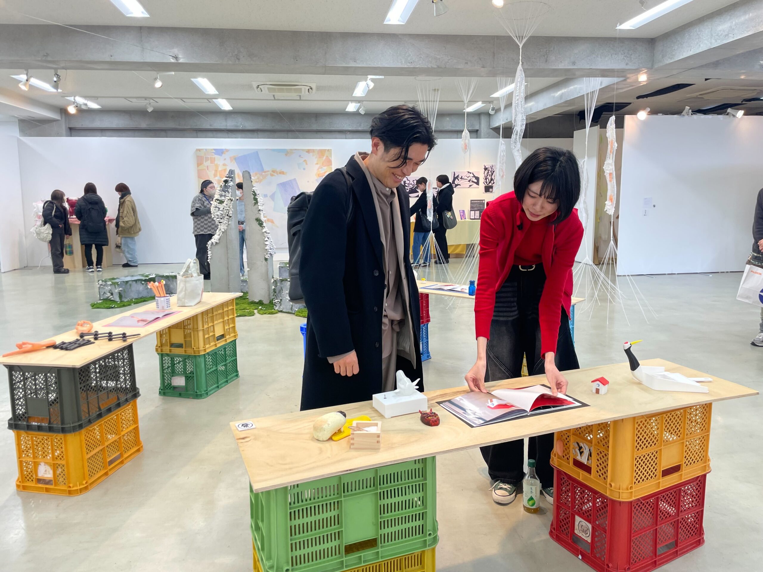 その後は4回生の卒業展を時間をかけてじっくりまわってくださり、それぞれの学生作品を介して、対話の時間も丁寧に持ってくださいました🌱