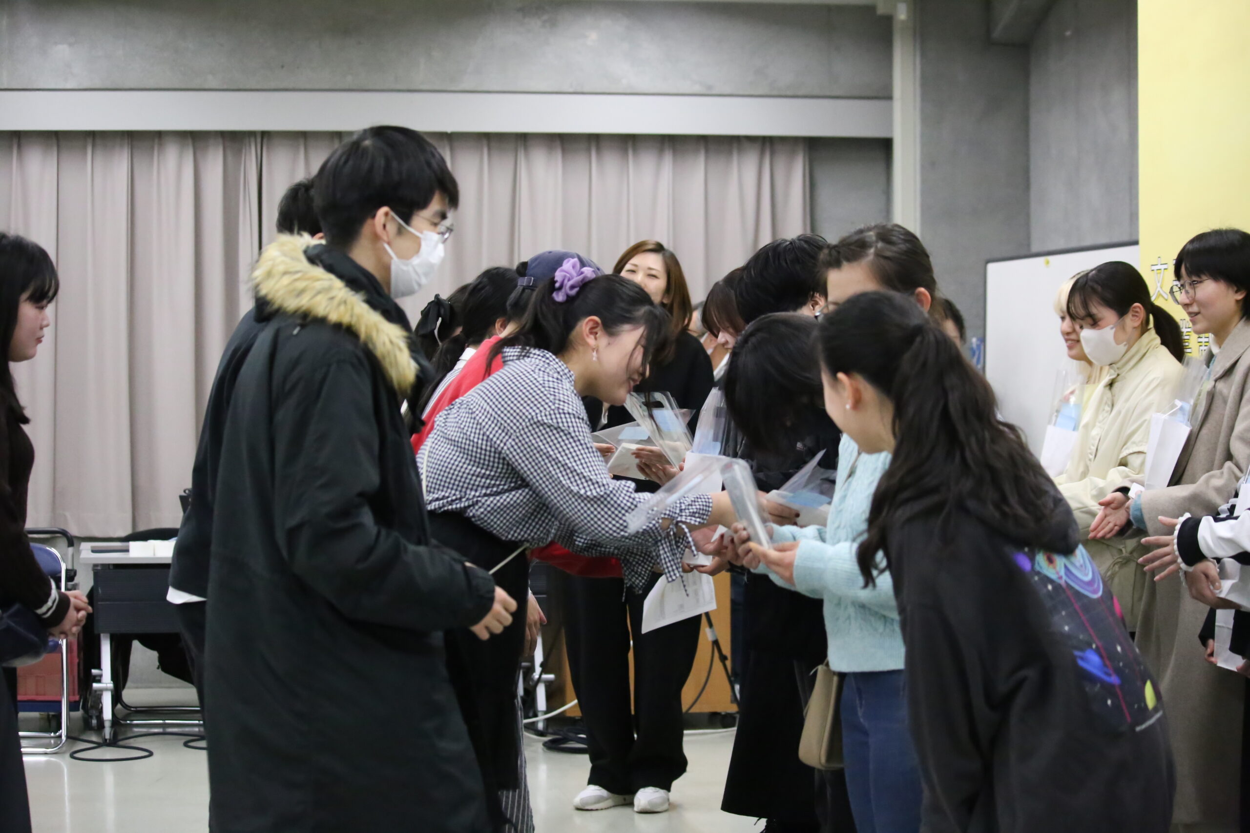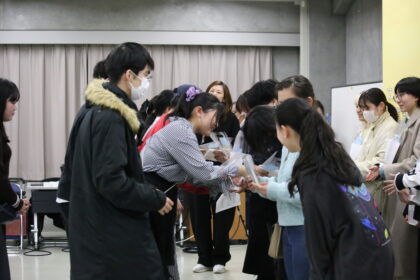 講評会の最後には、卒業制作の文庫本作成にあたり、装幀や素材提供などで協力をいただいた他学科の学生へ献本が行われました。