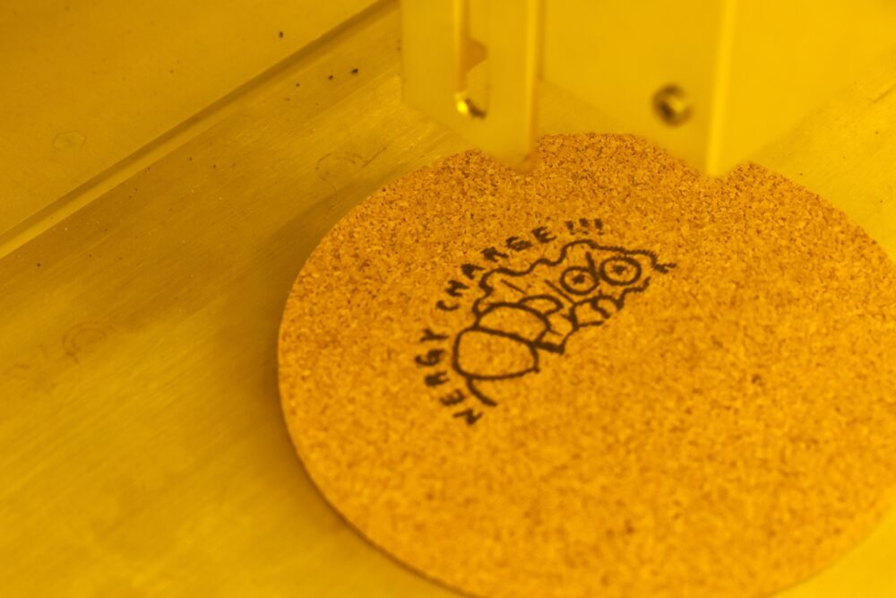 ③レーザー加工機にコースターをセットして、データを送信!