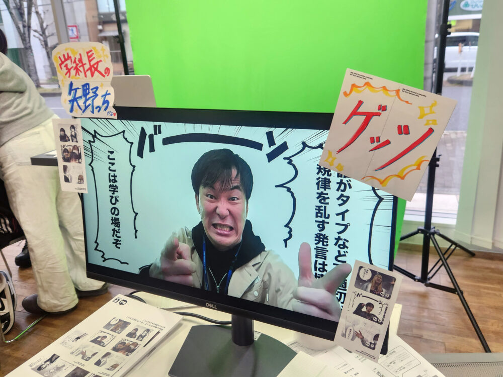 学生が描いたマンガの世界に入ってみたり、学生が制作したキャラクターと同じ空間に立ってみたり、