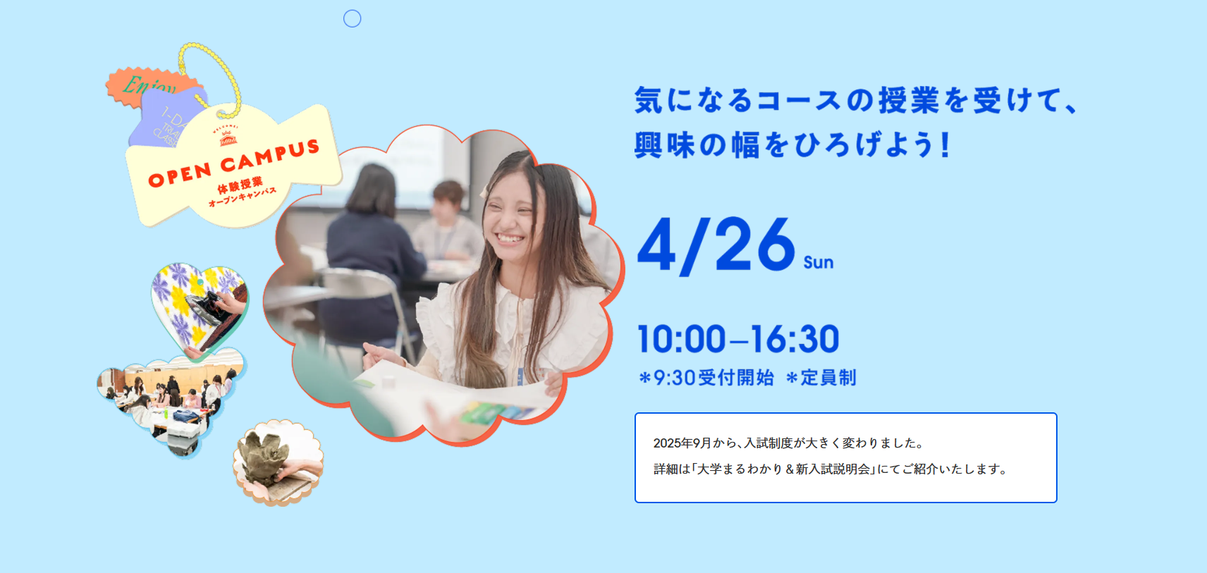 次回のOCは「気になるコースの授業を受けて、興味の幅を広げよう!体験授業型オープンキャンパス」です!