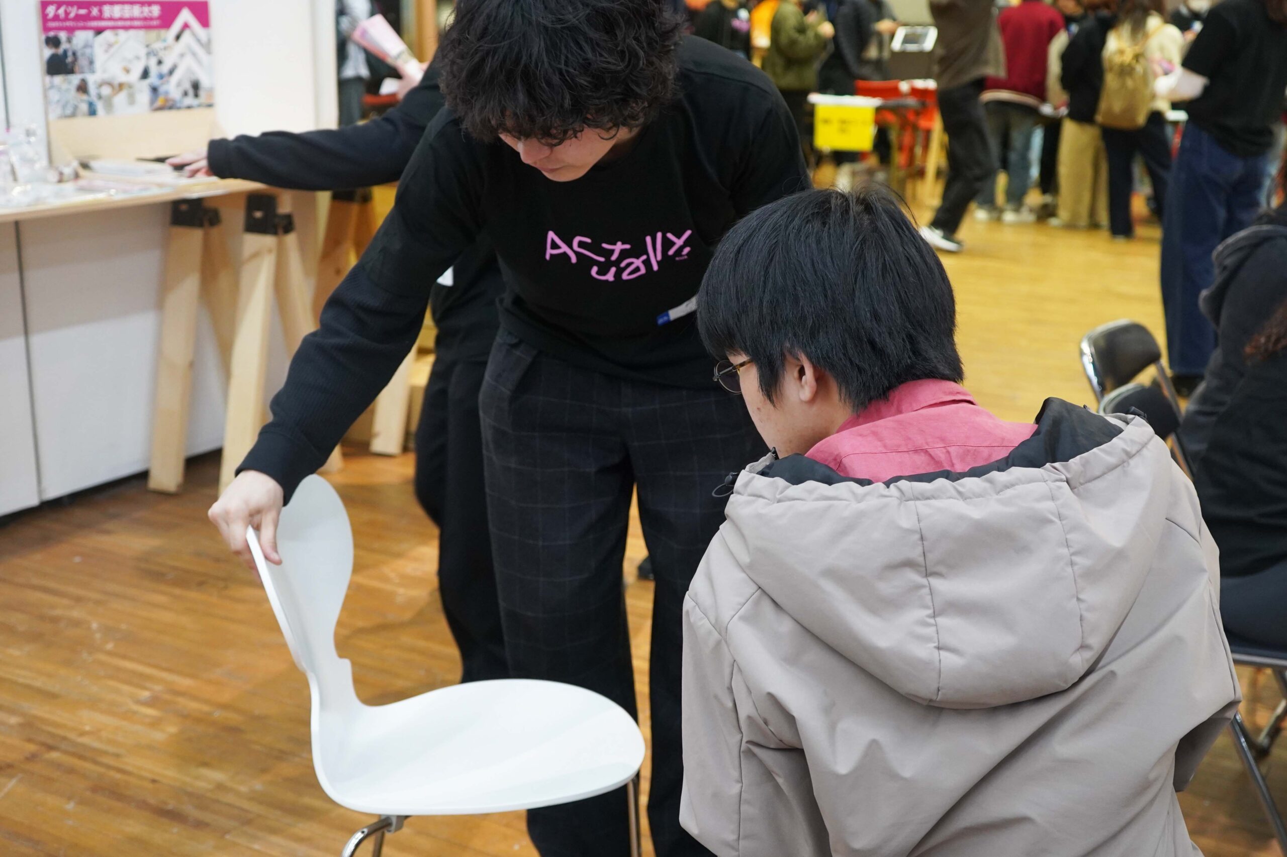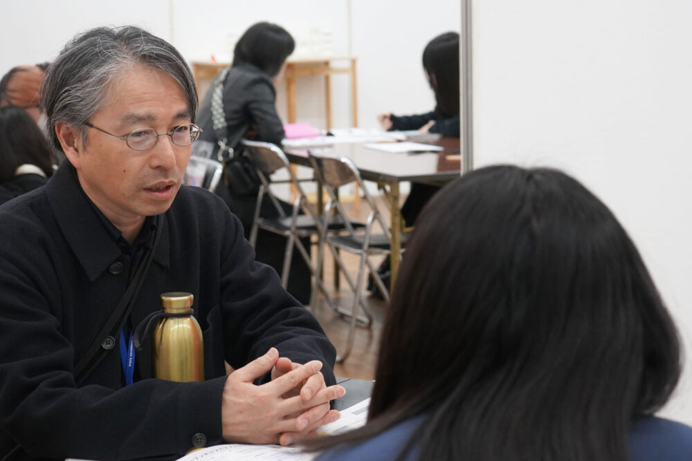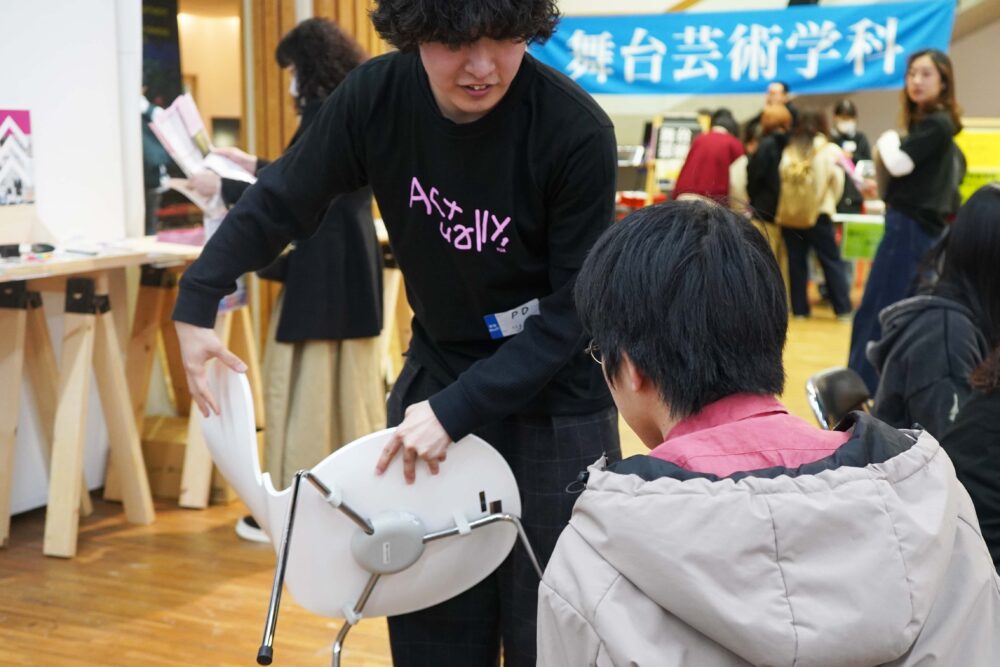個別相談のブースもあり、「プロダクトデザインって何?」という素朴な疑問や、具体的な入試情報、進路についての質問に、一人ひとりに丁寧にお答えします!