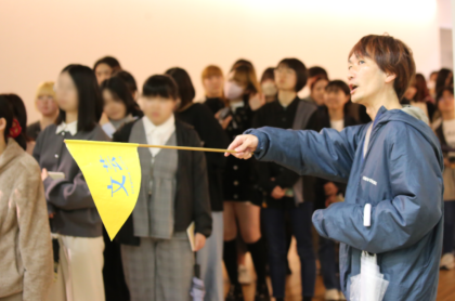 しとしとと雨が降る中のキャンパスツアーでしたが、広いキャンパスを仙田先生の誘導で練り歩く新入生の皆さんの背中からはこれからの4年間へのワクワクが伝わってきました。