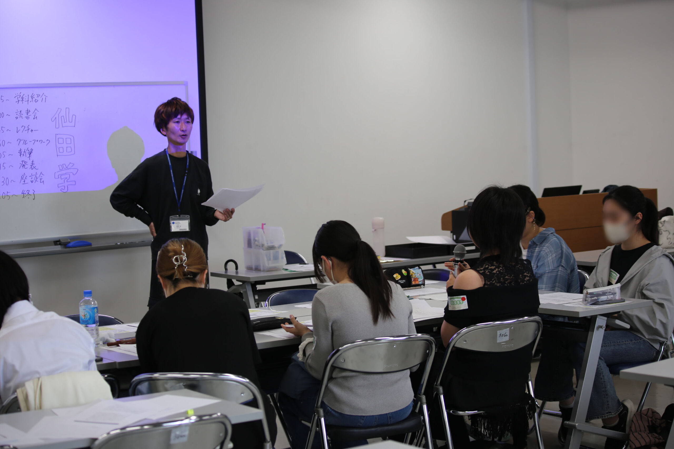 学生スタッフと一緒に、とある場面で行う反応から魅力的なキャラクターを考えるグループワークショップをしたり、実際に一場面を執筆してみるワークショップを開催しました。