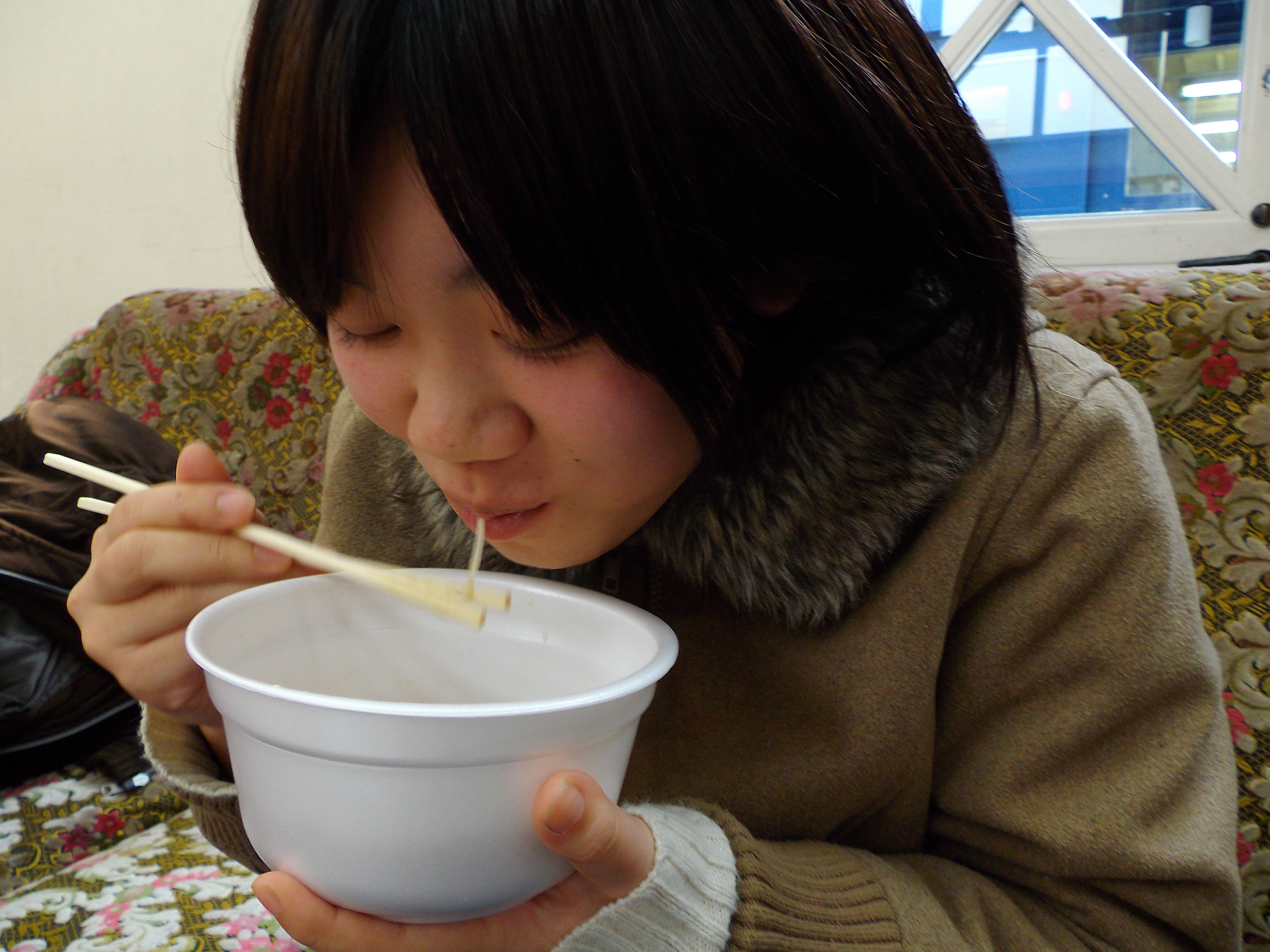 右側は粕汁にゅうめん、左側は天ぷら(ちくわと椎茸)です。食べかけなのは、ご容赦下さい。