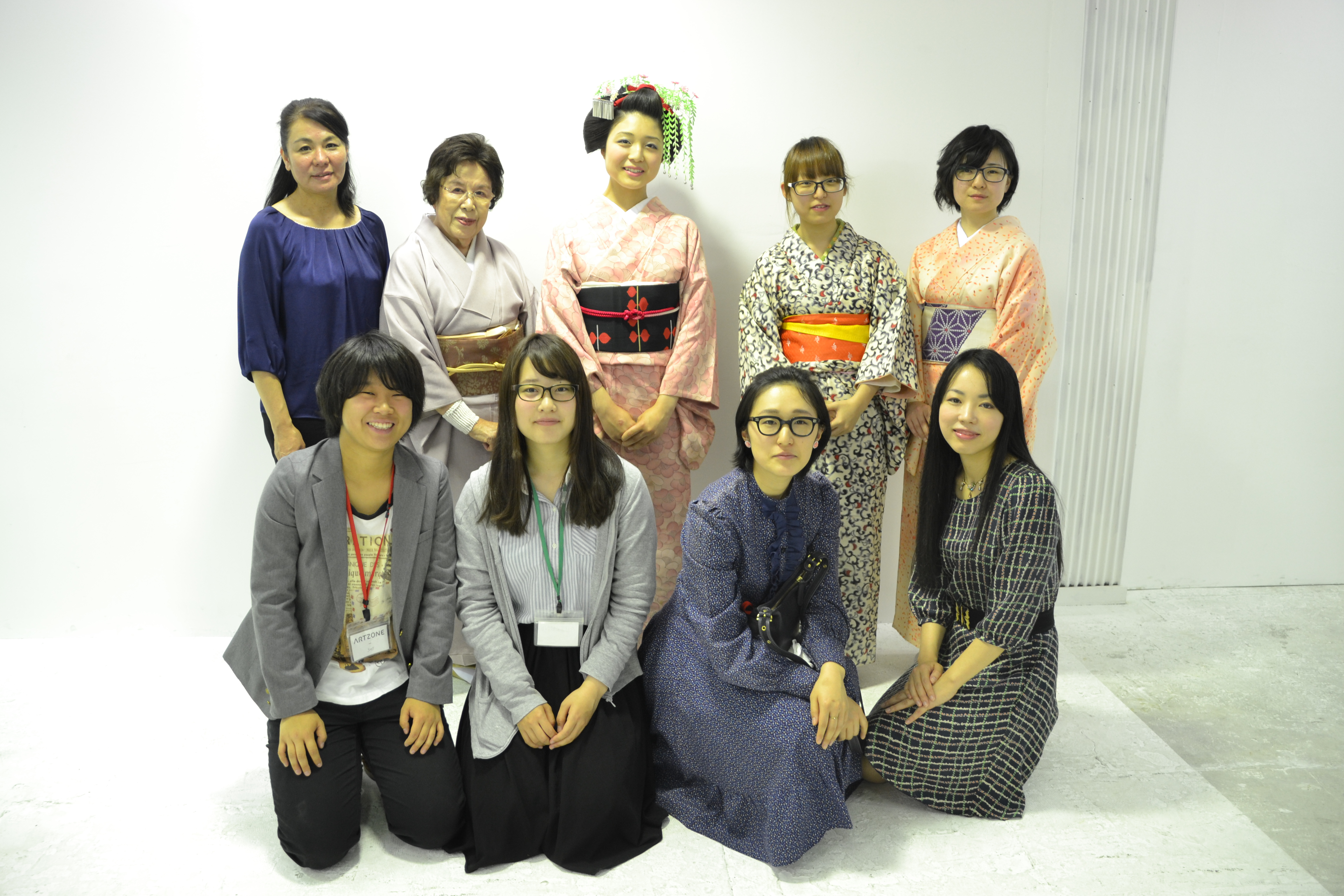 宮川町の舞妓さんをゲストに迎え、花街衣装研究会のメンバー、京都造形芸術大学の学生とともに舞妓の美粧や花街の文化について考えます。