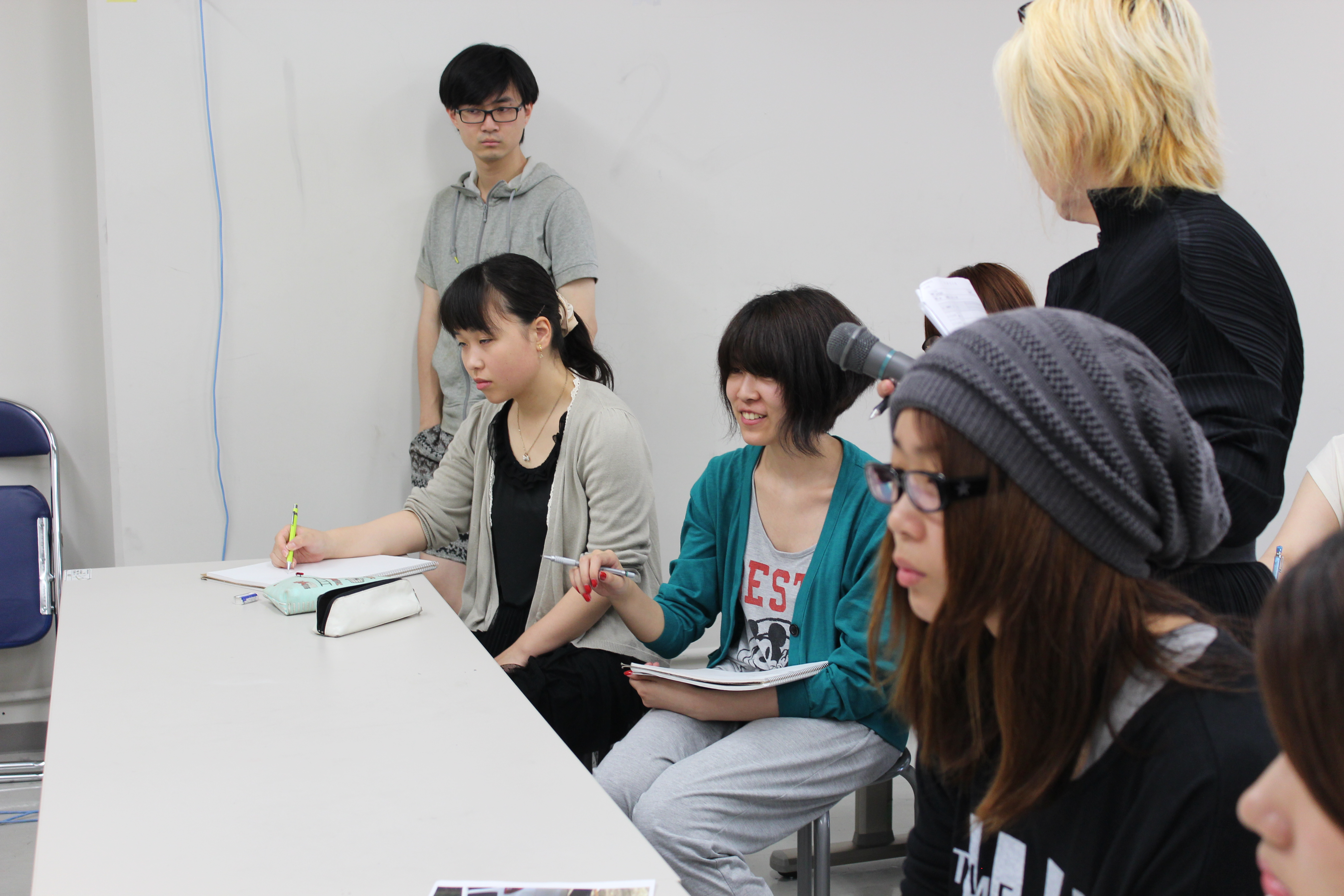 この表現基礎Ⅵでは全受講生の作品をみんなで観察しながら先生に講評してもらいます。