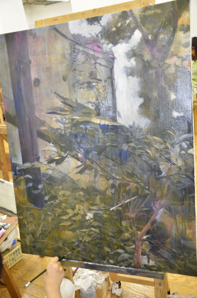 油絵具は現場で持っていかず、教室で油彩にとりかかります。