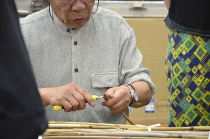 ▼葦ペンの作り方は木村先生が実演してくださいました。カッターで形を整えていきます。