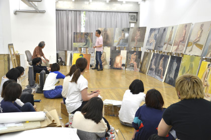 油彩と版画、2つのクラスに分かれてそれぞれ課題に取り組みました。