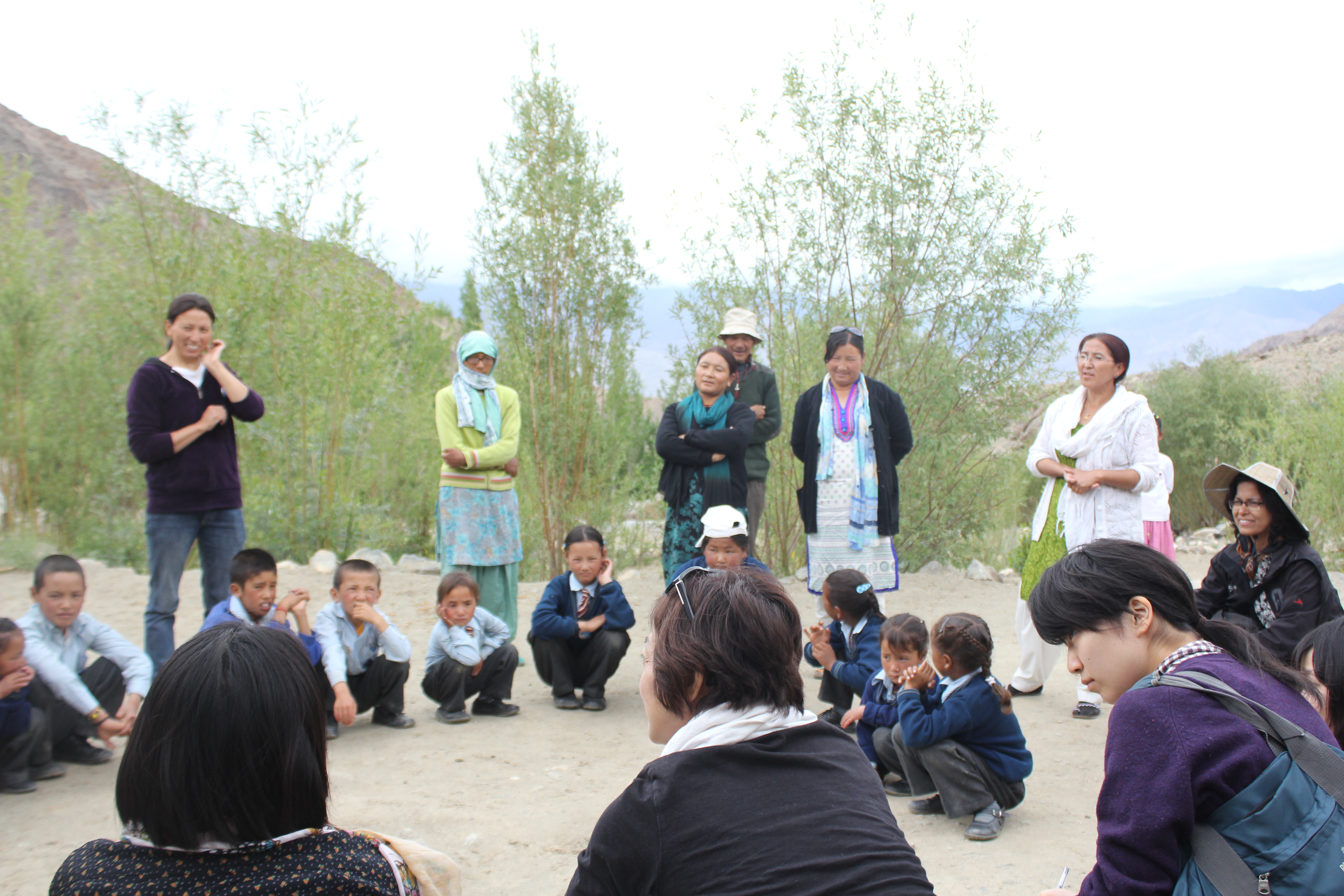 私は7月13日から8月15日までのおよそ一ヶ月間、インドの山の上のラダック地方に行ってきた。標高3500m~5000mというそんな世界だ。油断すれば高山病にもなりかねない。なぜ、そんなところに行ってきたのかと言えば、NPO法人が主催する「EARTH ART PROJECT」にボランティアとして参加をしたからである。プロジェクトの内容は、様々なアーティスト(画家、映像作家、写真家、先端芸術家、服飾アーティスト、作曲家など)をインドのラダック地方にあるナング村やプーガという場所に派遣し、現地の小学校で作品制作をして、最後、二日間のアートフェスティバルを開催するというものだった。今回アーティストは、日本、フランス、インドから7名が参加した。ボランティアは、当初より決まっていた日本からの10名に加え、以前「WALL ART PROJECT」(ガジャード)という名前で行なったアート制作プロジェクトに参加していたインド人の青年4名が、このプロジェクトに感銘を受けたらしく、わざわざ自費でボランティアとして参加してくれた。