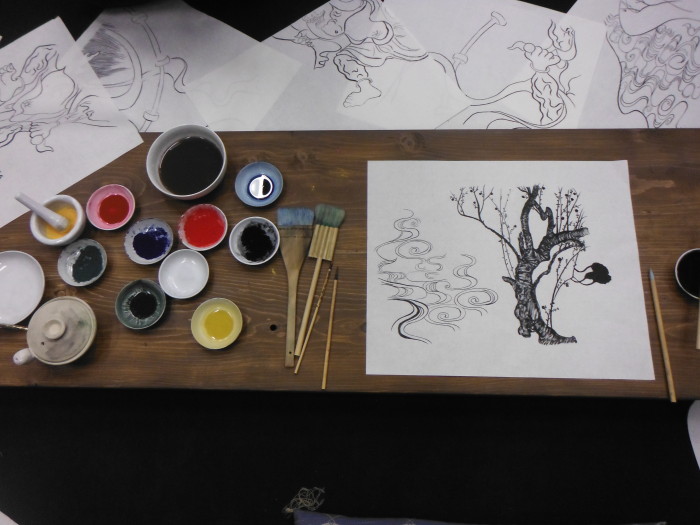 ちなみに、机に散らばっている絵は全て学生が手書きしたものです。