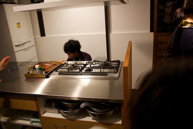 会場は、大学の目の前、こども芸術大学の1期生お母さんの離れ宅をお借りして、文字通りアットホームな追いコンでした。台所で、おでん、豆乳鍋、キムチ鍋、寄せ鍋の4種類、すべて調理してくれました!仕込みはなんと12時から!! みんな先輩のために腕をふるってくれました。