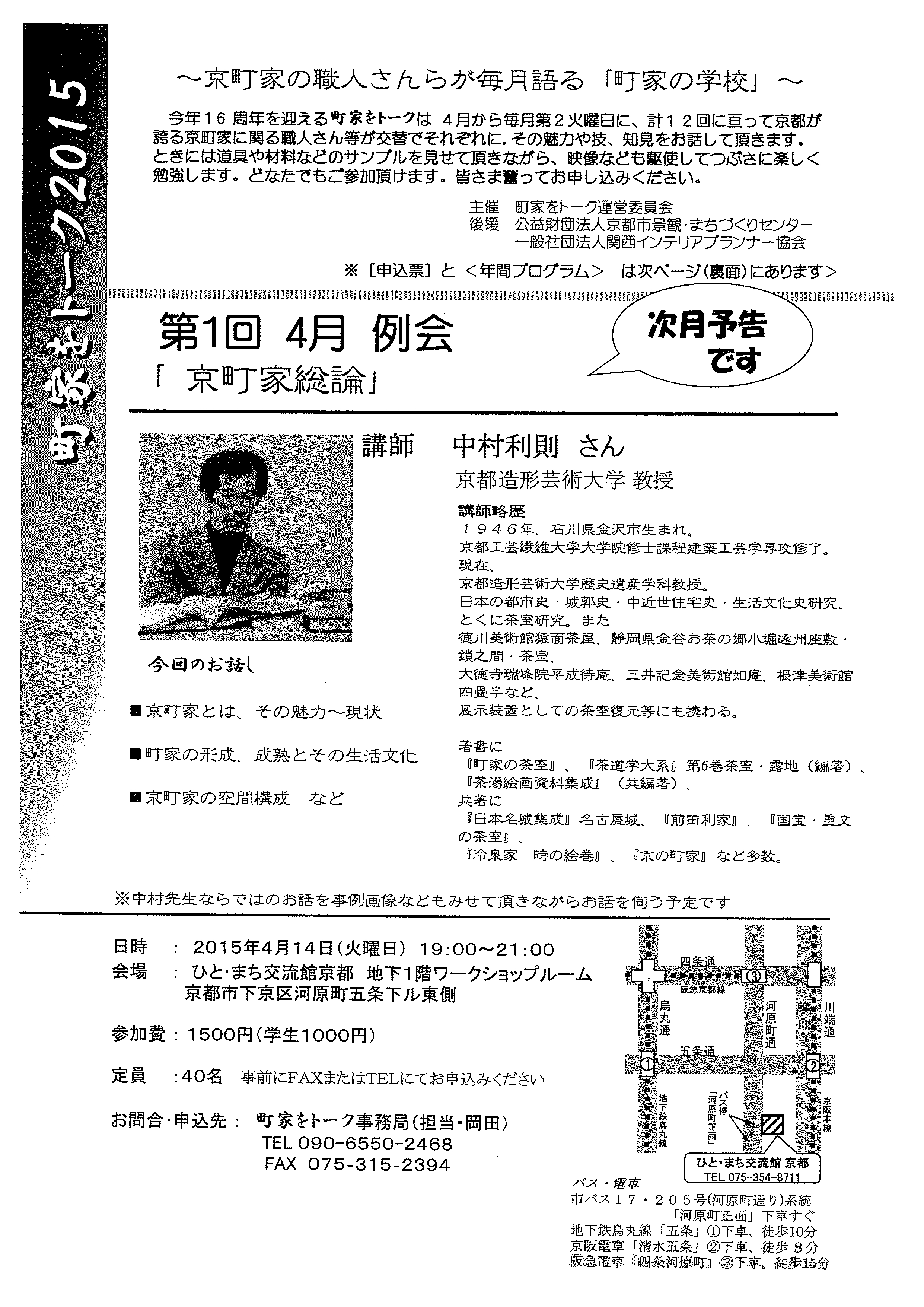 お問合・申込先:町家をトーク事務局(担当:岡田)