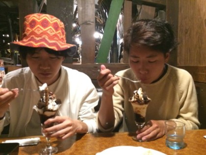 ゼミ生の野郎二人で食べる「珈琲メリーゴーランド」笑。