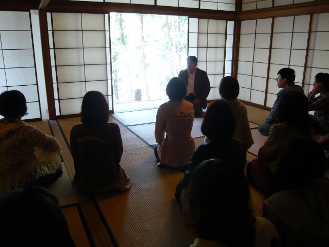 直心館から千秋堂(お茶室)へ移動し、全員正座で説明を聞きました。