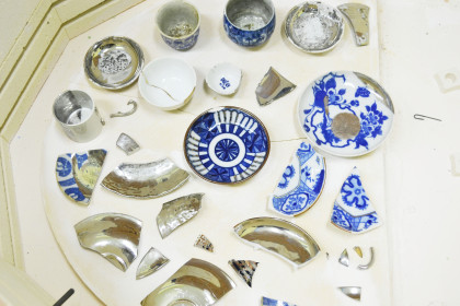 要らなくなった食器に銀彩や金継ぎを施し、
