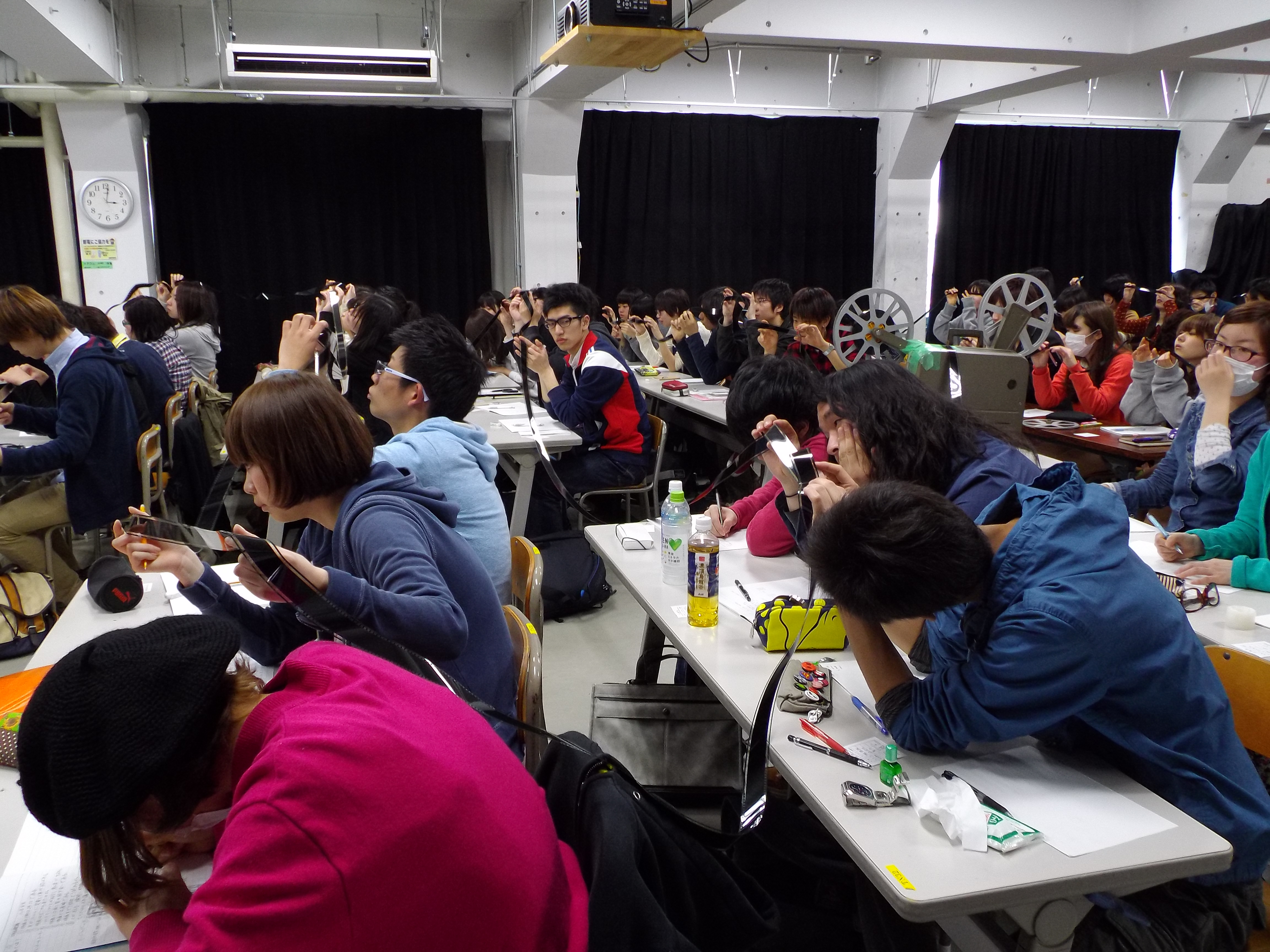 ラッシュフィルムを上映。撮影時のエピソードも織り交ぜながらの講義に、学生は