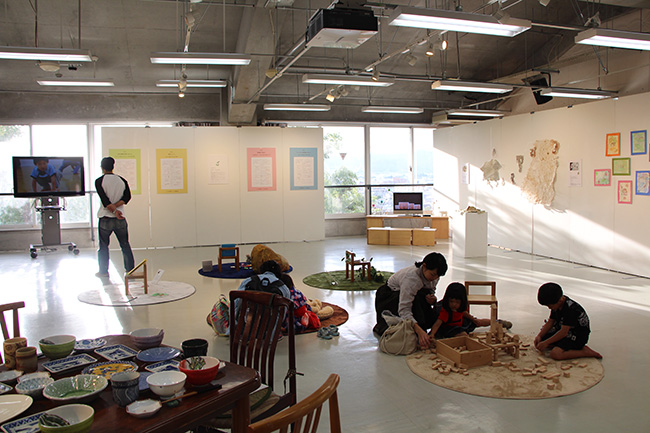 ※ 学園祭は、明日(9/20日)まで開催しています。こども芸術学科の多様な制作を是非見に来てください。会場の中では、こども芸術学科を紹介するブースもあり、過去の学生の作品や活動の映像、学科の概要を見て聞くことが出来ます。こども芸術学科の展示会場は、人間館の4階のNA413室になります。