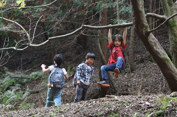 帰り道は、少し余裕のある子どもたち、不思議な形をした木や、フカフカの苔、きれいな落ち葉。