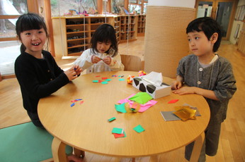 折り紙を折りながらの、こども同士のおしゃべりもとっても楽しそう。