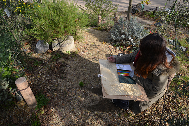 スケジュールは、園内をフィールドワークを1時間位しあとは各自描きたい場所で制作開始です。