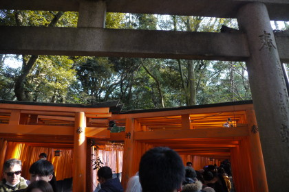 しばらく歩くと・・・・・出ました!伏見稲荷名物、千本鳥居!!